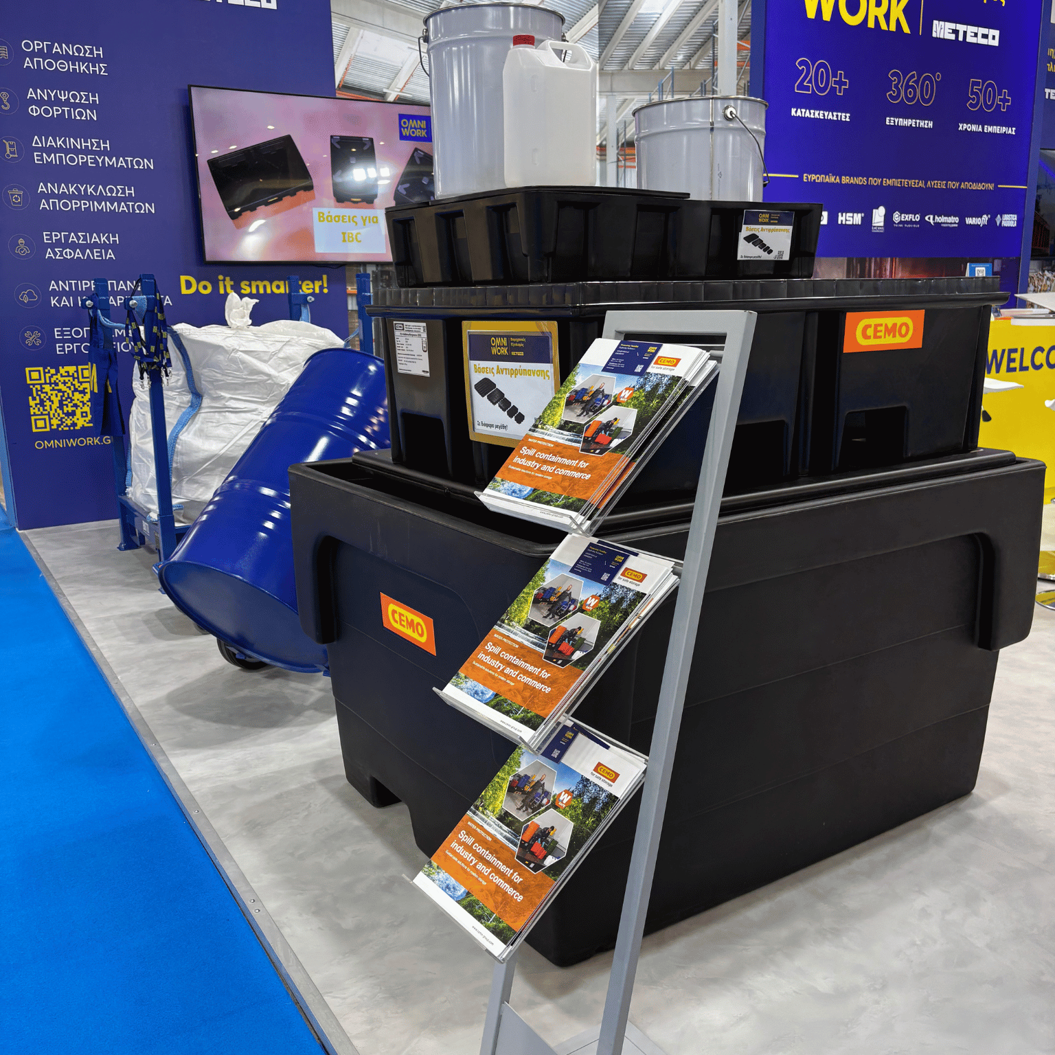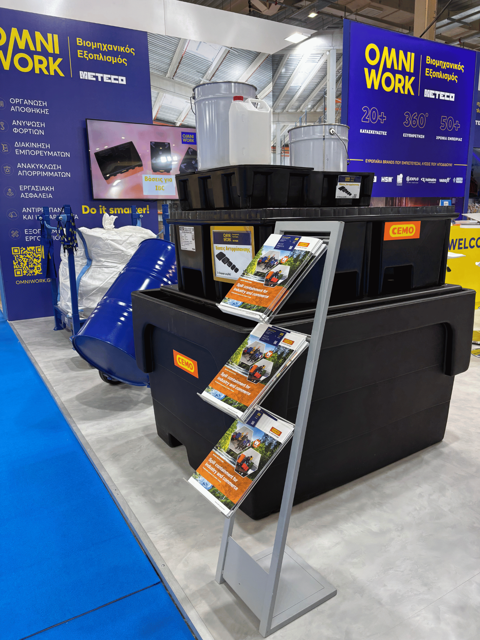 Στο πλαίσιο της έκθεσης, η METECO παρουσίασε ολοκληρωμένες λύσεις που καλύπτουν τις ανάγκες των σύγχρονων αποθηκών, κέντρων διανομής και παραγωγικών εγκαταστάσεων στους τομείς της ανακύκλωσης συσκευασιών, της διακίνησης και ανύψωσης υλικών, της εργονομικής αποθήκευσης, καθώς και της αντιρρύπανσης και διαχείρισης επικίνδυνων διαρροών.